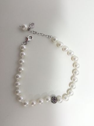 Preciosa pulsera Tous. Elegante y delicada, luce perfecta en la muñeca. - Elaborada con perlas blancas. - Incluye una original chapa de plata con el oso Tous.