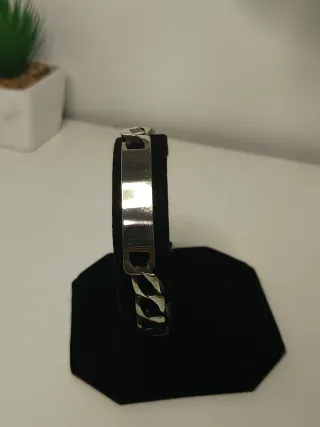 Elegante pulsera de plata de ley con un diseño de eslabones y placa central. - Material: Plata de ley. - Acabado pulido. El artículo que se envia es el de las fotos 10% De descuento por la compra de dos artículos o más. Solo se hacen envíos ⚠️