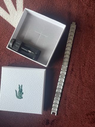 En venta Pulsera Lacoste Nueva sin abrir. Precio: 19,99€ la Pulsera Lacoste ** Calidad 10/10 ToP Ideal para regalo a tu nu o a tu mariedo Acero inoxidable Con Caja ajustador ves en la foto Haz tu pedido directamente enviamos tu pedido en menos de 24�📦�