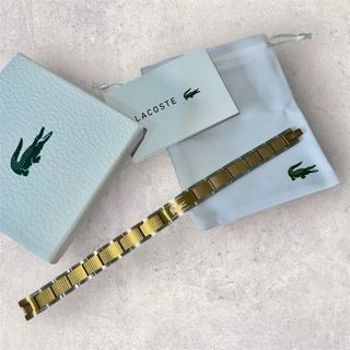 Elegante pulsera de la marca Lacoste con un diseño bicolor. - Combinación de tonos dorados y plateados. - Detalle del icónico cocodrilo de Lacoste.