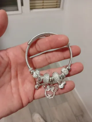 Bonita pulsera de plata con varios charms.En su caja. - Cuenta con charms en forma de corazón y de Mickey. - Incluye cuentas de cristal rojas. - Cadena extensible para ajustar a la muñeca.