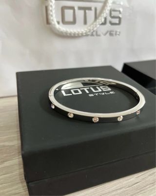 Elegante pulsera tipo brazalete de la marca Lotus Style. - Diseño con detalles brillantes. - Acabado plateado.