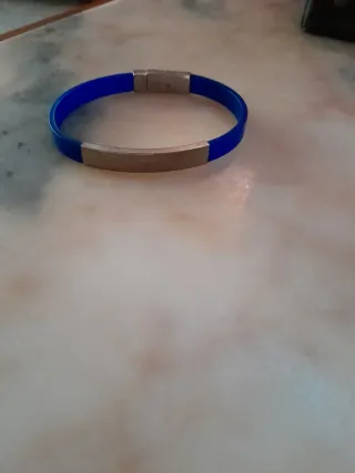 Elegante pulsera con banda central de plata 925 y correa azul. - Material de la banda: Plata 925. - Material de la correa: Silicona. - Cierre metálico.