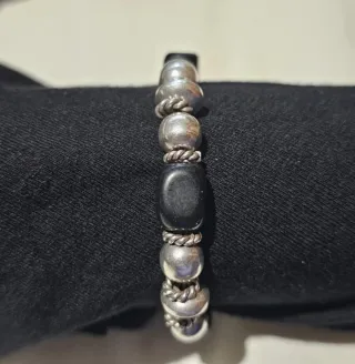 Pulsera con bolas de onix en acabado mate y una bola central plateada. Pulsera unisex. Medida de muñeca más para hombre o ancha. Mejor probar. Nueva