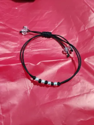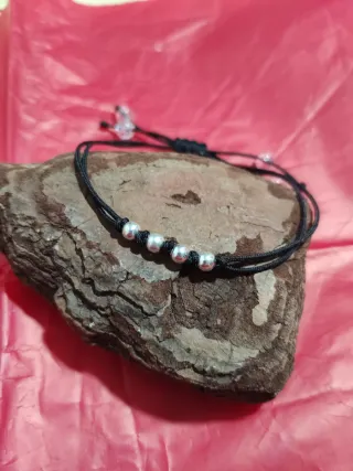 Elegante pulsera con un diseño sencillo y moderno. - Bolas de plata.y bola2 de cuarzo - Cordón negro ajustable.