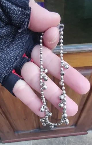 Hola, vendo en Trobajo del Camino (León), está bonita tobillera o pulsera con un diseño delicado y adornada con pequeños cascabeles. Bolas de metal bañadas en plata con bolitas colgantes La tengo desde hace 20 años y la puse en algunos eventos especiales. Del uso se perdieron varios cascabeles, de ahí su precio. Se puede ver y probar sin ningún compromiso. Posible envío, pero los gastos corren por cuenta del comprador. Gracias