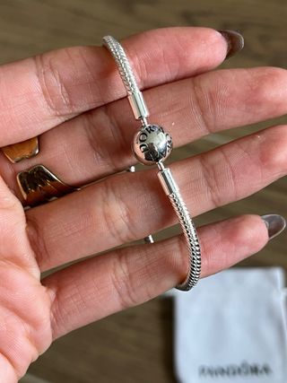 Pulsera con cierre de Bola x Pandora, plata 925. Es la talla 18 cm, va con su bolsa.