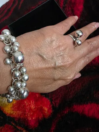 Conjunto Pulsera y Anillo Bolas Plata
