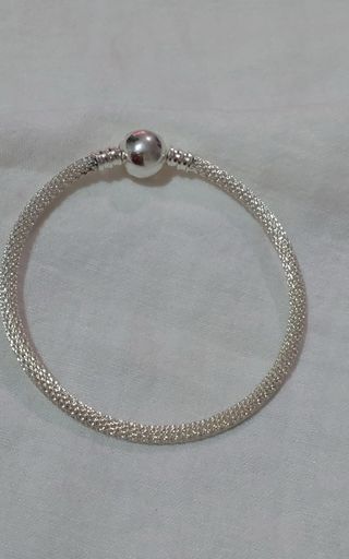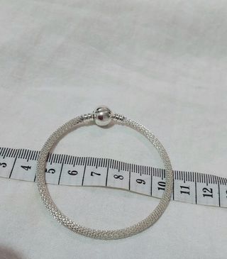 Colección: Moments Snake ChainMaterial: Plata de Ley (Sterling Silver) Incluye: Caja original y Factura de compra (Prueba de autenticidad). Pulsera Cadena de Serpiente (Snake Chain) Charm 1 (Separador/Clip): Charm de clip redondo con incrustaciones de circonitas (cristales) brillantes. Charm 2 (Bead): Charm básico de bola brillante Pandora.
