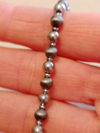 Lote compuesto por 1 collar largo color madera de colores (sin usar), 1 tobillera nueva sin utilizar en su bolsita, una pulsera cuencas rosa y elefante nueva sin utilizar en su bolsita, pulsera de bolas negras (sin usar, pero con el tiempo algunas bolas han perdido algo de color y no son tan negras), pulsera de bolas negras y plateada (no se ha utilizado), pulsera fantasia de colores (sin usar), pulsera cuencas negras con charm de Mickey (el charm se puede quitar y poner en la pulsera, utilizada en dos ocasiones), pulsera de color plata con charms de 18 cm nueva sin utilizar y en bolsa. Se pueden vender por separado.