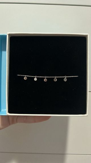 Elegante pulsera con un diseño delicado y moderno. Perfecta para añadir un toque de brillo a tu día a día. - Cadena fina de plata. - Colgantes circulares. - Un charm con circonita.
