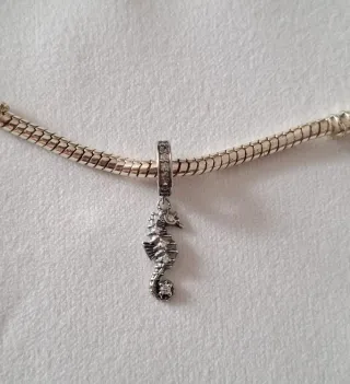 Este encantador charm tiene la forma de un caballito de mar, adornado con pequeñas circonitas brillantes que le dan un toque de luz. - Diseño detallado de caballito de mar. 🔷️ Compatible con pulsera Pandora y otras marcas. 🌟 Nuevo sin estrenar. 📬 Envio rápido y bien protegido.