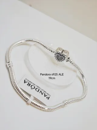 Pulsera de la marca Pandora con un diseño de corazón y cadena tipo serpiente. - Material: Plata de ley S925. - Longitud: 19 cm. - Cierre de seguridad con forma de corazón Ale s925. adornado con pequeñas circonitas.