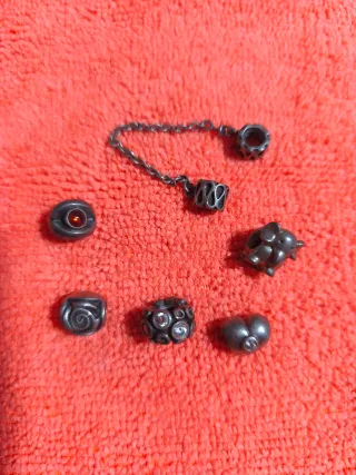 - Conjunto de seis piezas de plata para pulsera. - Diseño de ojo con gema rojo. - Charm con forma de elefante. - Cuenta con diseño de rosa. - Abalorio con circonitas. - Corazón con pequeña circonita. - sin garantía ni devolución. - Pagos y envíos por wallapod.