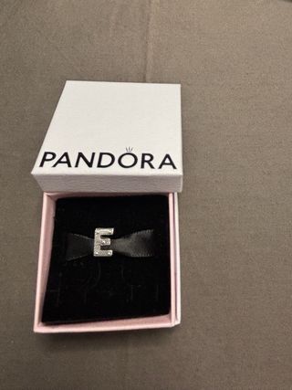 Charm de la letra E de Pandora, con un diseño de lazo y circonitas. Es un accesorio elegante y brillante. - Plata de ley. - Circonitas brillantes.