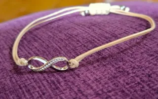 Elegante pulsera con un diseño de infinito adornado con pequeñas circonitas brillantes. La pulsera es ajustable y cómoda de llevar. Plata ley - Símbolo de infinito. - Detalles de circonitas.