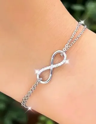 Elegante pulsera con diseño de infinito - Fabricada en PLATA de Ley con su contraste S925 . Con cadena doble - Cierre seguro de mosquetón - Con Circonitas en el infinito - En caja de regalo 🎁 NO negociable.