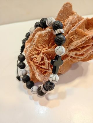 Pulsera Lava y Howlita Cruz Negra