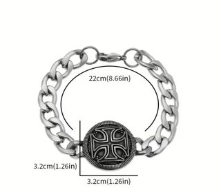 Elegante pulsera con un diseño central de cruz. - Cadena robusta de eslabones. - Detalle de cruz en relieve. - Acabado plateado.