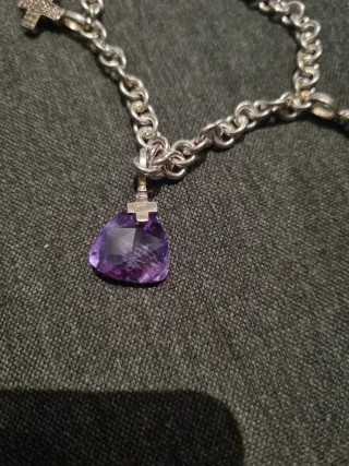 Cuerda morada y figura de cruz en plata. Precio original 65€