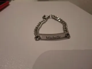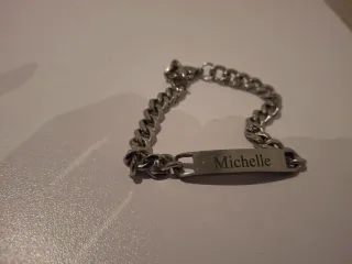 Elegante pulsera de plata pura con placa grabada. - Diseño de cadena. - Grabado Michelle en la placa.