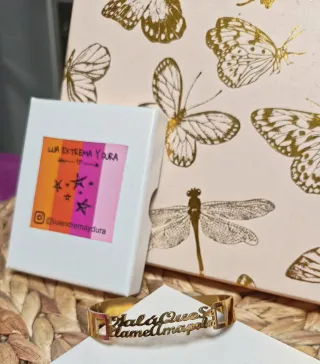 Bonita pulsera de acero con un diseño moderno y elegante. Perfecta para personalizar con un nombre o fecha especial. - Material: Acero inoxidable. - Acabado: Combinación de plata y oro. Aunque en la foto se ve borrosa, esta nueva