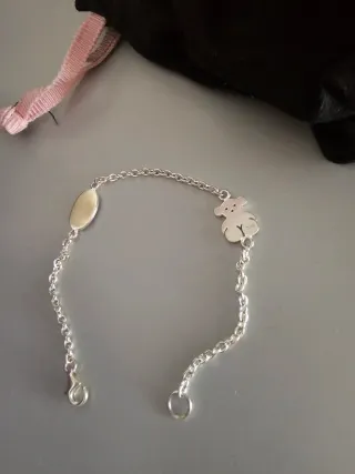Preciosa pulsera de la marca Tous, con un diseño delicado y elegante. - Charm en forma de oso. - Charm ovalado con posibilidad de grabar nombre, fecha, etc - Cadena fina plateada. - Cierre de mosquetón.