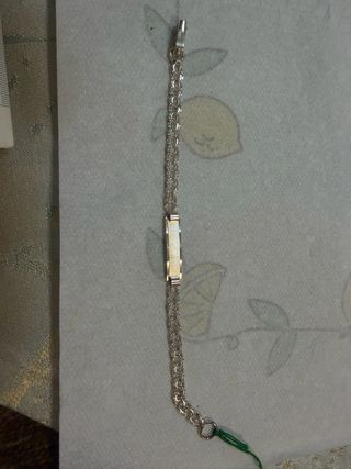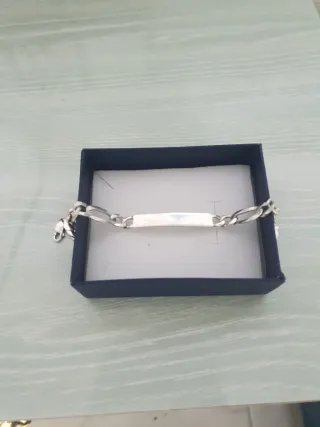 Pulseras esclava de plata de ley. Cada una mide 15 cm y pesa 3,60 g, tengo dos. Diseño fino y elegante con placa central, ideal para grabar nombre o fecha. Cadena resistente con cierre seguro tipo mosquetón. Perfectas para niño/a, muñeca fina o como regalo. En muy buen estado