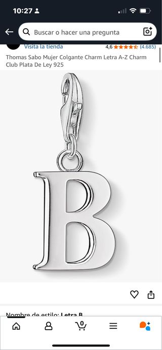 Dale un toque personal y elegante a tu pulsera o collar con este precioso charm en forma de Letra B, fabricado en auténtica plata de ley 925. 💎 Detalles del producto: • Material: Plata de Ley 925 (sellada) • Diseño: Letra “B” minimalista y elegante • Acabado: Brillante y delicado • Estado: Muy bueno ✅ (bien cuidado, con ligeras señales de uso apenas apreciables) 🎁 Ideal para regalar a alguien especial cuyo nombre empiece por B… ¡o para completar tu colección de charms! 📦 Envío rápido y bien protegido. 💬 Si tienes alguna duda, ¡escríbeme sin compromiso!