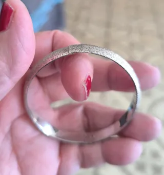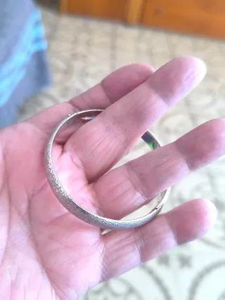 Vendo esta preciosa pulsera rígida tipo esclava de Plata de Ley. A diferencia de las esclavas tradicionales que son lisas, esta tiene un trabajo de labrado precioso que la hace única. Pulsera dividida en 2 partes, con cadena de unión y parte central rígida con grabado. Ancho: 6,2cms. aprox. de diámetro- Material: Plata de Ley 925 maciza (calidad garantizada para toda la vida). Cierre de Seguridad: Mosquetón fuerte y fiable para que no la pierdas nunca. Estado: Impecable, pulida y con un brillo espectacular. Hago envíos rápidos por Wallapop o entrega en mano. ¡Para cualquier cosa escríbeme! 📩