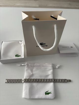 Dale un toque distintivo a tu muñeca con esta pieza de Lacoste en acabado plata. Un accesorio que destaca por su estética limpia y sofisticada, perfecto para quienes buscan elegancia sin complicaciones. Gracias a su diseño ligero, es súper agradable de usar durante todo el día. Encaja a la perfección tanto con un look relajado de fin de semana como con un estilo más ejecutivo. • ✨ Condición impecable: Como nueva. • 💪 Calidad garantizada: Fabricada en material de alta resistencia. • 🎁 Versatilidad total: Un capricho para ti o el detalle perfecto para regalar. • 📦 Logística impecable: Paquete enviado con la máxima protección y rapidez