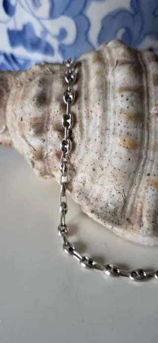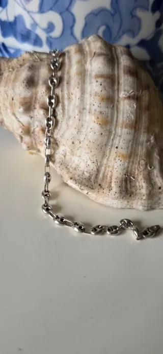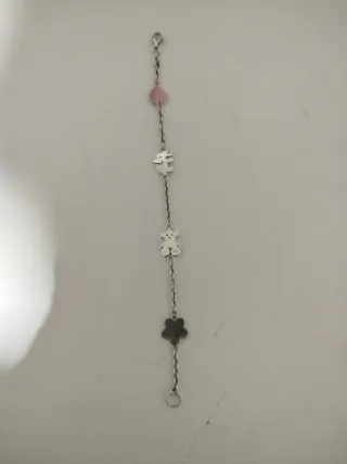 Elegante pulsera con un diseño delicado. - Cadena fina y brillante. - Cierre de mosquetón. - Extensor para ajustar la medida. Son bastante buenas, yo tengo una como la ultima y todavía no me ha dado ningún problema con agua ni sudor.