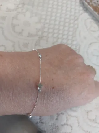 Elegante pulsera de plata 925 con un delicado diseño. - Elaborada en plata de ley 925. - Adornada con pequeñas bolas y un charm de estrella. - Cadena fina y ajustable.