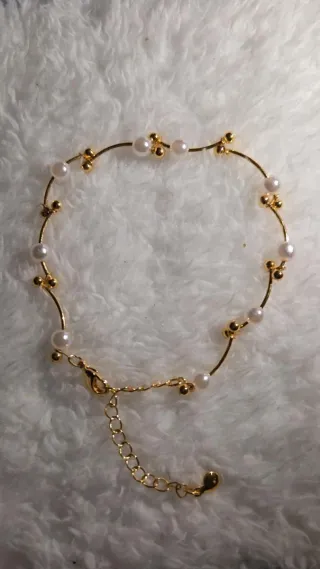 Elegante pulsera con un diseño delicado y adornos de perlas. - Cadena fina de metal dorado. - Perlas pequeñas intercaladas. - Cierre de mosquetón con cadena de ajuste.
