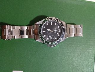 Reloj de pulsera con diseño deportivo y elegante. - Bisel giratorio con marcadores de 24 horas. - Correa de eslabones metálicos. - Ventana de fecha en la esfera.