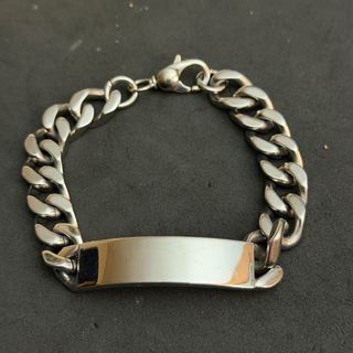 NO ES PLATA. Elegante pulsera de eslabones con placa central. - Diseño de eslabones curvos. - Acabado plateado brillante. - Cierre de mosquetón seguro.