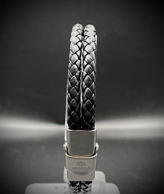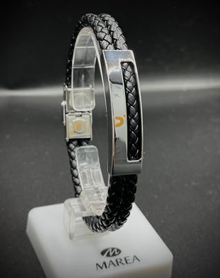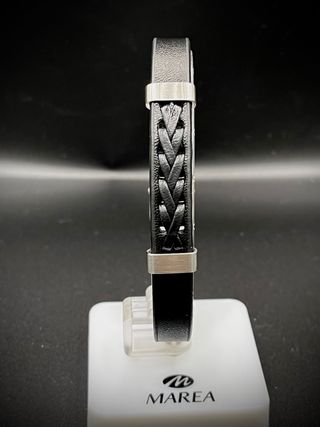 Elegante pulsera de la marca Marea para hombre, con un diseño moderno y sofisticado. C00103/327 - Elaborada en cuero negro trenzado. - Detalles en plata. - Cierre seguro y cómodo.