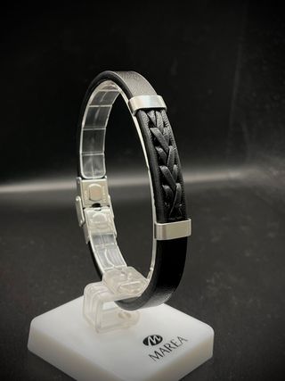 Pulsera de cuero con detalles metálicos. - Cierre magnético de acero. - Diseño moderno y elegante.