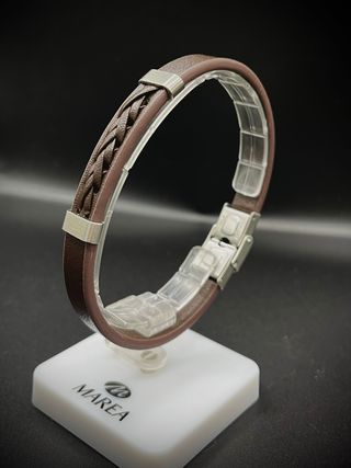 Pulsera de la marca Marea para hombre, con un diseño moderno y elegante. C00103/328 - Material de cuero trenzado en color marrón. - Detalles y cierre en metal plateado. - Cierre de seguridad tipo hebilla.