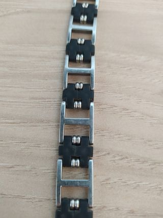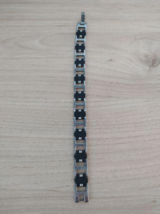 Elegante pulsera para hombre de acero inox, de color negro y plata. Con señales de uso. - Diseño moderno y sofisticado. Largo 20 cm.