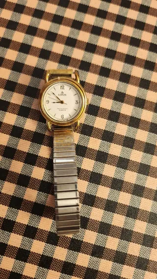 Elegante reloj de pulsera Lotus para mujer, con un diseño bicolor que combina tonos dorados y plateados. - Esfera blanca. - Correa de eslabones. - Cierre de seguridad. Sin estuche Pulsera mide 26cm. Funciona perfectamente Solo 27€ incluida la pila recién puesta. No hago envíos Venta en persona Precio justo No admito ofertas Estoy en el barrio de Gràcia Cerca de la plaza del Diamant
