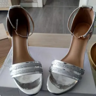 Elegantes zapatos de tacón para ocasiones especiales. - Diseño con tiras y detalles brillantes. - Cierre de pulsera al tobillo. - Tienen solo una puesta. - Los blancos son perfectos de novia. - Son muy cómodos. - Los 3 por 15 € o 6€ cada uno. - No hago envíos y pago en efectivo