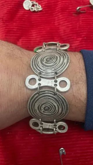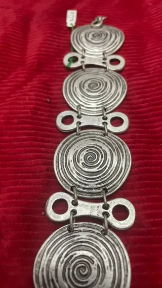 Elegante pulsera de estilo Art Déco con un diseño de espiral. - Diseño circular con motivos de espiral. - Acabado plateado. - Pieza de joyería llamativa.