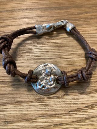 Pulsera plata y cuero Virgen con el niño