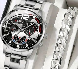 Para hombre: Pack muy elegante Reloj plateado más una pulsera de cadena a juego de acero inoxidable muy bonitos nuevos a estrenar, ideal para regalar TAMBIÉN DISPONIBLE EN COLOR DORADO El juego 19€ El juego mas caja a elegir color entre negro, azul y rojo 20€ MAS CONJUNTOS DE RELOJES DE HOMBRE EN MI PERFIL, TAMBIÉN CAZADORAS, PANTALONES, CAMISAS, JERSEIS, CHAQUETAS, CAMISETAS, ETC..... TAMBIÉN DISPONGO DE ROPA, CALZADOS, MAQUILLAJES Y ARTICULOS DE MUJER Y NIÑ@S.... PREGUNTAME SIN COMPROMISO