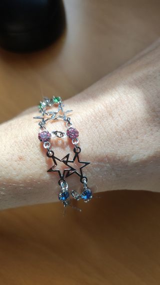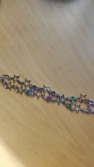 Bisutería plateada con brillantes de colores. Perfecta para una niña joven que quiere empezar con sus joyas personales