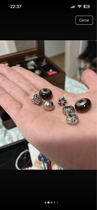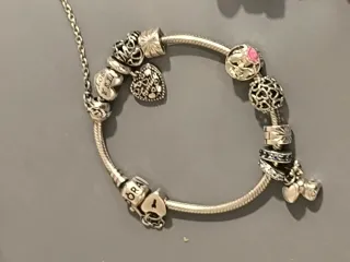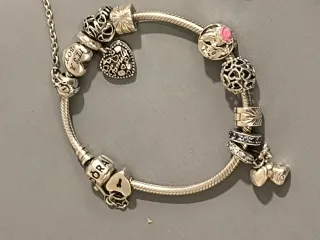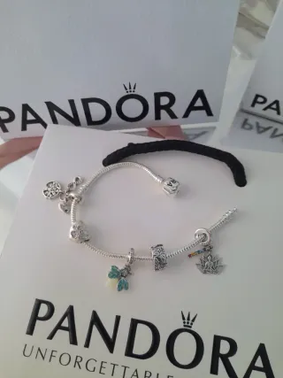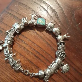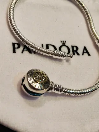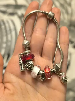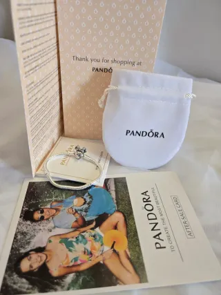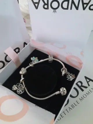 Se venden pulseras Pandora con abalorios, todo es original de Pandora . Para precios dime cuál te gusta Pulsera sola 24€ Charms desde 11€ hasta 15€ cada uno - Diseño de cadena plateada. - Abalorios con detalles en varios colores y formas. - Cierre de seguridad.