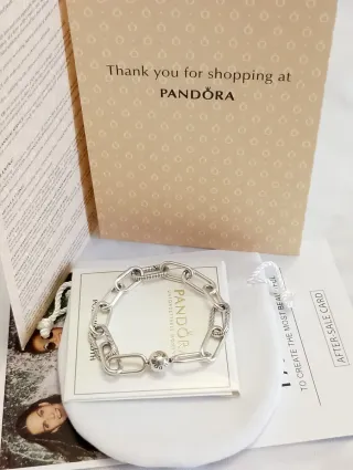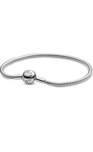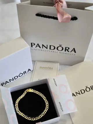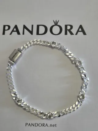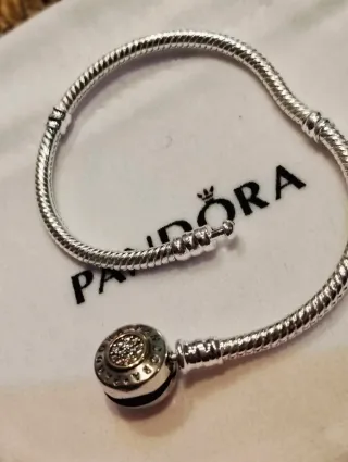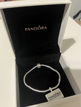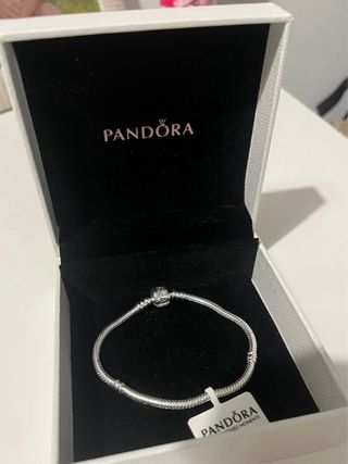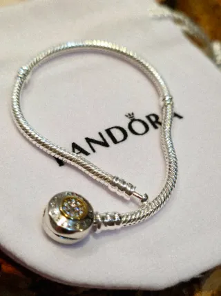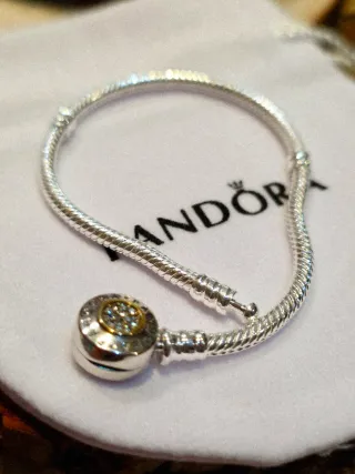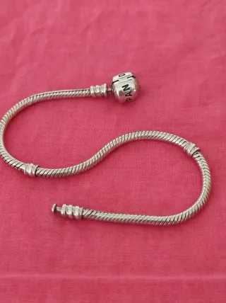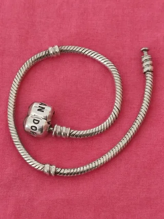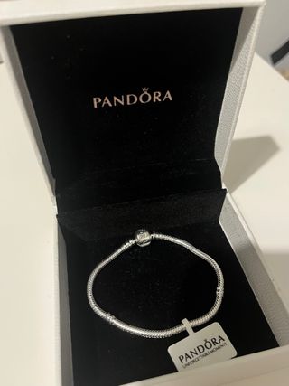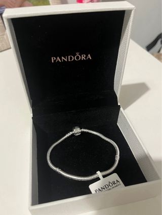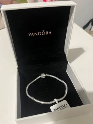 Elegante pulsera de la marca Pandora, con un diseño clásico y atemporal. Perfecta para combinar con tus charms favoritos. - Longitud: 18 cm. - Cierre seguro y fácil de usar.