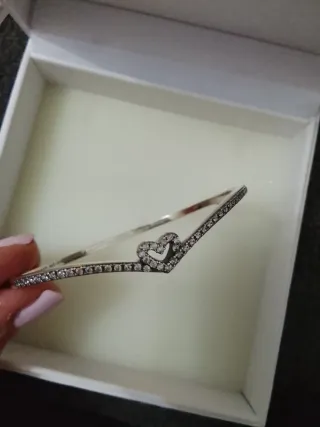 Elegante pulsera Pandora con cierre de corazón. La pulsera esta nueva ya que fue un regalo y me quedo grande, como perdieron el ticket no la pude cambiar. Precio negociable