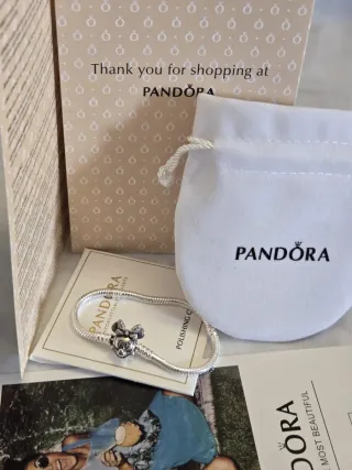 Conjunto de pulsera Pandora original nueva a estrenar y cinco charms de plata de ley925. Se pueden elegir cualquier charms de mi página para combinar que sea plata ley. - Pulsera Pandora original - Cinco charms variados plata de ley 925 - Cierre con logo de Pandora.